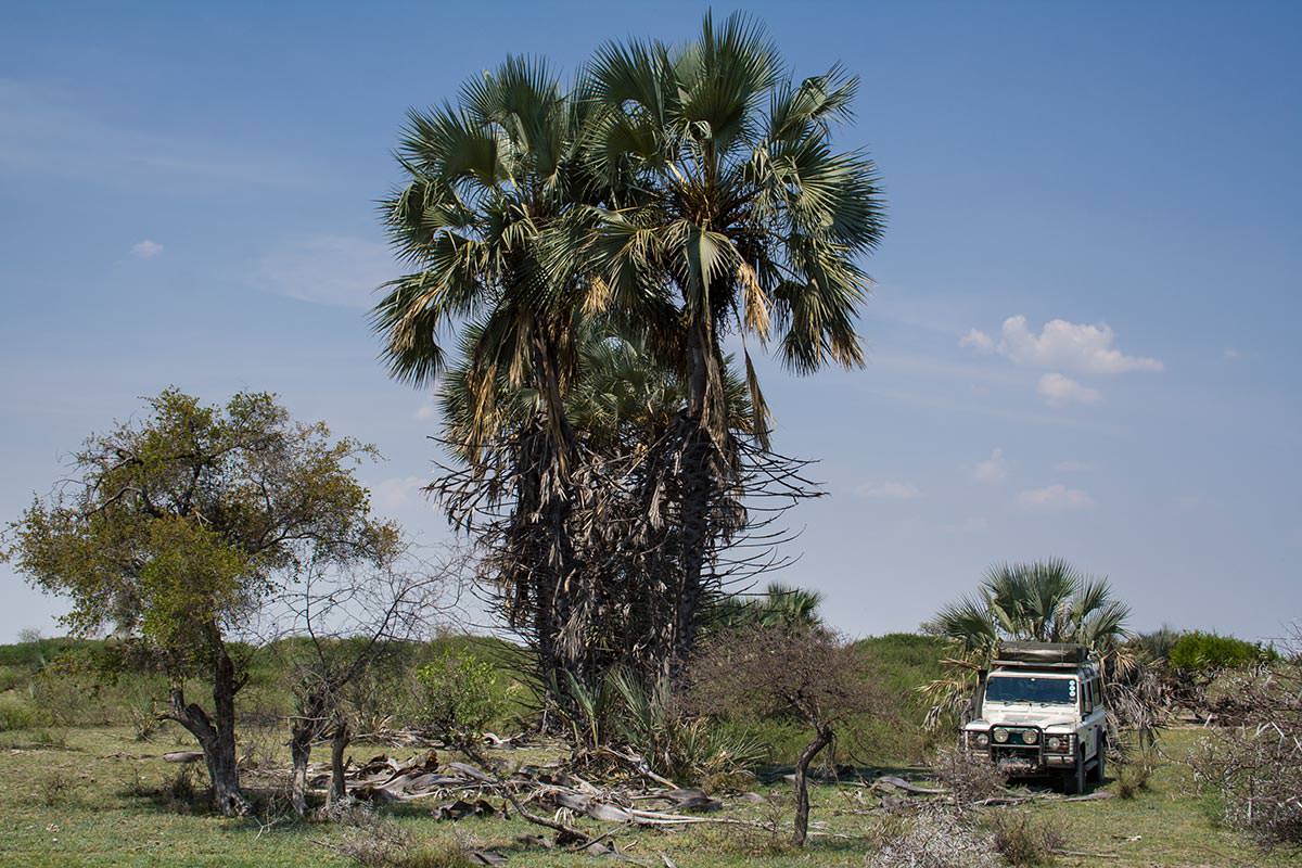 Hm, und ohne GPS? Eigentlich können wir uns immer ganz gut orientieren, haben es auch mit dem Stand der Sonne und den Himmelsrichtungen drauf, aber: wenn alles gleich aussieht, fährt man wirklich immer geradeaus…? Die Inhaber der Campsite bieten ihre Hilfe an, sie wollen sich nach Mitreisenden erkundigen, sind aber nicht einmal in der Lage, eine vernünftige Karte beizubringen. Was von Makgadikgadi bleibt, ist ein Gefühl des „Echt schade!“ und einen kleinen Ausflug an den Rand des Pfannenareals, immer in Sichtweite der letzten Palme. Am Ende fahren wir (auch das hier heimische Erdferkel sehen wir nicht) nach nur einem Tag Aufenthalt weiter Richtung Norden zum nächsten Ziel.