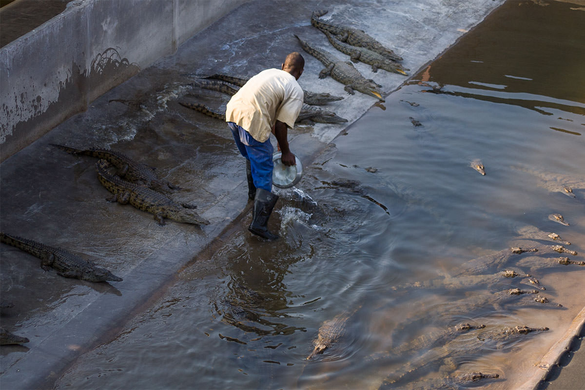 Der Campingplatz in Kariba scheint geschlossen (in jedem Fall verwaist), auf Hotel oder Hostel haben wir keine Lust oder es fehlt am Budget und während wir mit Tempo 20 durch den Sable Drive tuckern, sehen wir einen Einheimischen, dem Fragen zu stellen sich zu lohnen scheint. Ob es im Ort außer dem etwas traurig aussehenden Campingplatz noch andere Zeltmöglichkeiten gebe, wollen wir wissen, worauf der Mann nickt und auf seinen Vorgarten weist. Dank unseres Gefährts kommen wir schnell ins Gespräch bald eilt der Bruder des Mannes herbei und es dauert nicht lang, bis wir fachsimpelnd im Wohnzimmer der beiden sitzen und die Einladung annehmen, bei ihnen auf dem Grundstück zu übernachten. Rasch stellt sich heraus, dass die Brüder eine große Krokodilfarm vor den Toren Karibas leiten, deren Besichtigung für den nächsten Tag ausgemacht wird. Bis in den späten Abend wird über die Situation in Simbabwe gesprochen, über Safaris und Nationalparks und die beiden wissen auch bald, was die Ursache unseres Problems mit dem Gaspedal des Land Rovers ist: Das TPS, throttle position sensor (dt. Drosselklappen-Positionssensor), ist kaputt. Dafür wird es in Kariba keinen Ersatz geben, und leider auch bis zum Ende unserer Reise nicht…