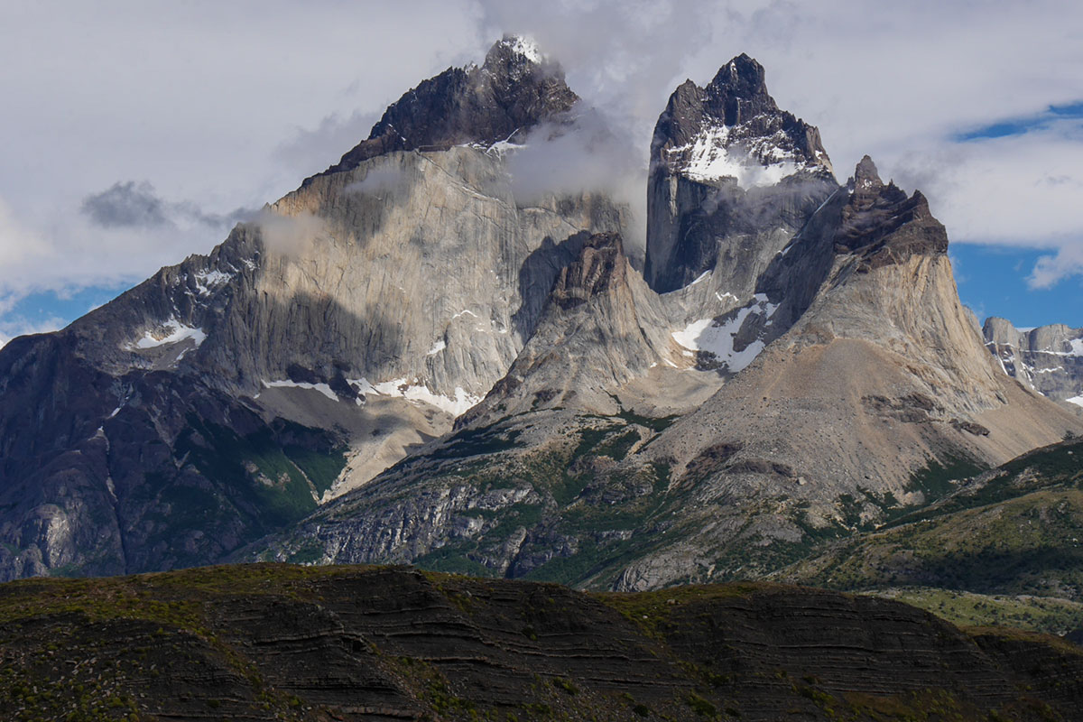 Torres del Paine ist sicherlich einer der schönsten Nationalparks Südamerikas mit smaragdgrünen Wäldern, azurblauen Seen und den steil aufragenden Granitbergen der „Türme von Paine“. Diese Türme sind auch nicht bloß einfarbig wie jene in Chalten, sondern sind durchsetzt mit unterschiedlichen Gesteinsschichten, was ihnen mehr Farbspiel und damit mehr Räumlichkeit verleiht. Diese ganze Farbenpracht vor blauem Himmel macht vor Staunen atemlos. Eine üppige Tierwelt ist dann die Sahne auf dem Kuchen: Kondore, Flamingos, Pumas und Füchse, Guanacos, Andenhirsche…, die Liste ließe sich verlängern.