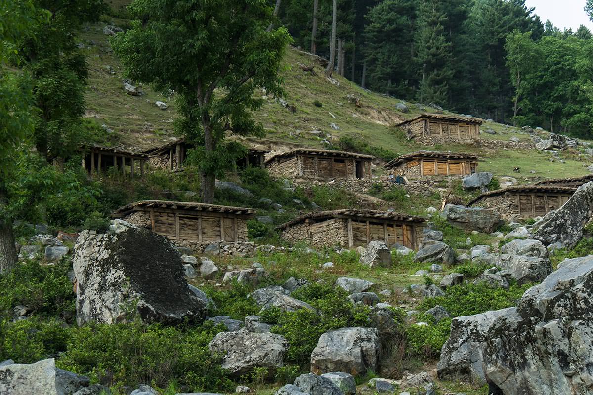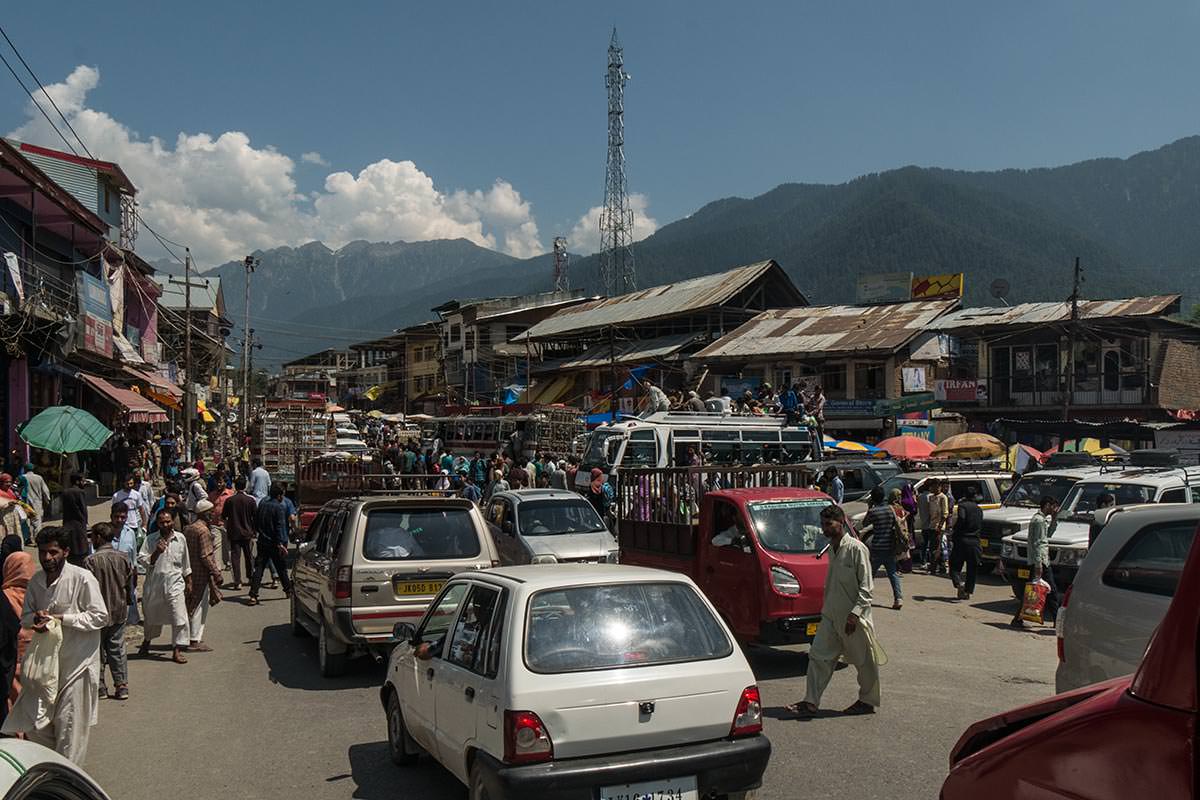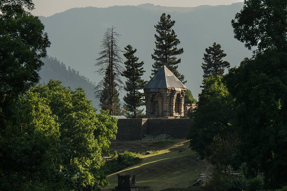 Gegen sieben Uhr in der Früh stehen wir gestiefelt und gespornt vor dem Hotel, kommen allerdings erst gegen zehn Uhr aus Srinagar weg. Es gab – angeblich – Organisationsprobleme und der Koch ist auch noch nicht da. Kurz nach zehn geht es dann aber wirklich los, zuerst Richtung Norden über Gandarbal nach Wayul. Für die 25 Kilometer brauchen wir fast eine Stunde, es ist Stau, den die Polizei rigide mit Knüppeln aufzulösen sucht. In Kangan gibt es eine Pause, der Koch muss Lebensmittel einkaufen und auch wir haben die Gelegenheit, die eine oder andere Banane zu erwerben. In Kangan biegen wir von der NH1 nach Naranag, dem Startpunkt unseres Treks, ab. Es geht durch das schöne Tal des Wangat-Flusses, vorbei an Bergwiesen und Kiefernwäldern und eine halbe Stunde später sind wir in dem kleinen Ort, der fast nur noch vom Tourismus lebt. Naranag ist aber nicht nur „Basis-Lager“ für Wanderungen in die umliegende Bergwelt, es gibt auch eine bedeutende archäologische Anlage, ein Shiva-Tempel aus dem 8. Jahrhundert.