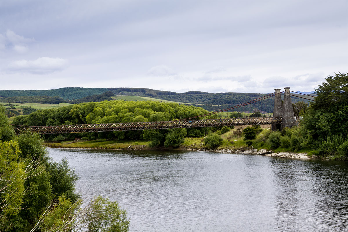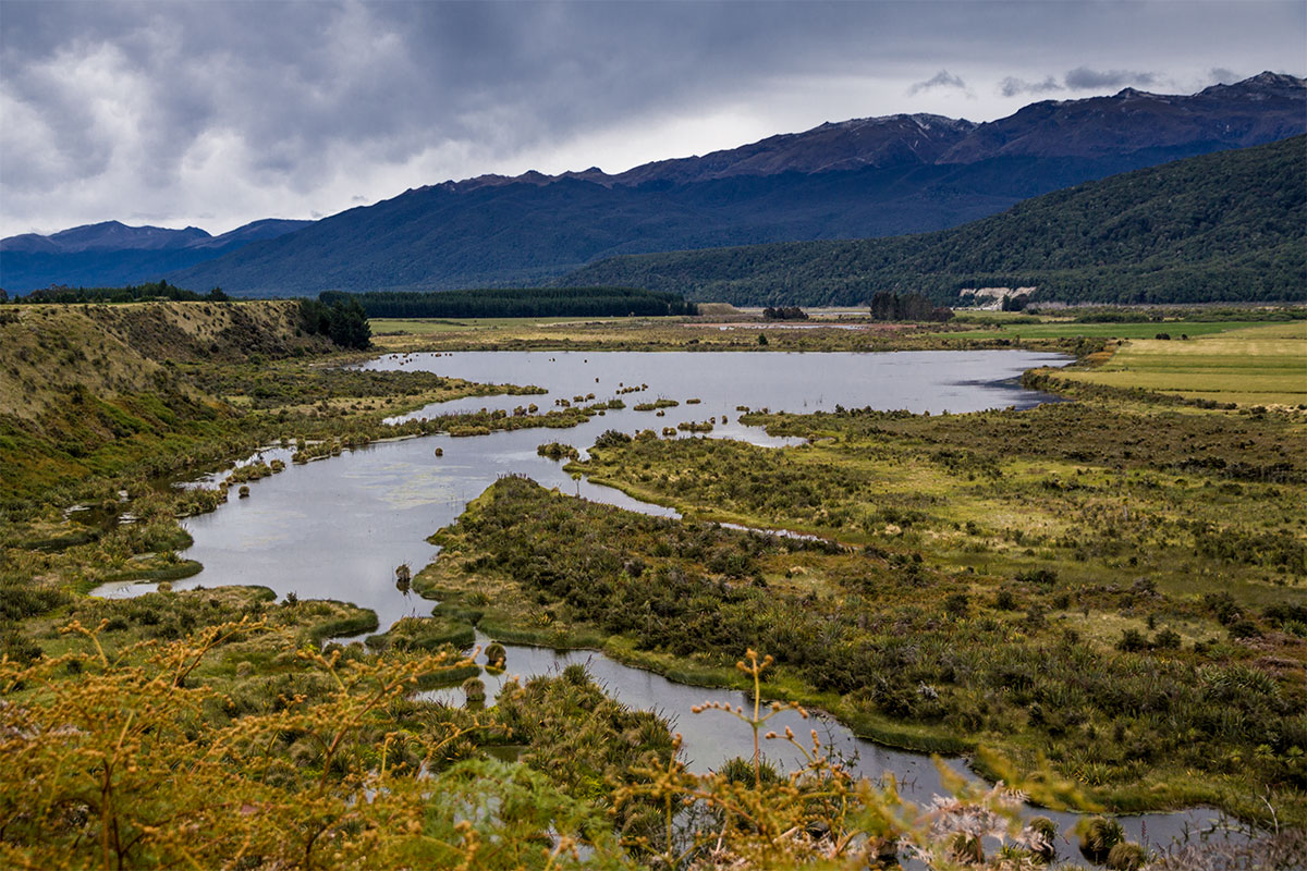 Wenig hinter Tutapere liegt Clifden und seine Hängebrücke aus dem Jahre 1899; wer will, kann hier aussteigen und über die Brücke auf die andere Seite laufen…, und wieder zurück. Einige Hundert Meter weiter kann der Neugierige unterirdische Höhlen, die Clifden Caves, in Augenschein nehmen, in denen es u.a. Glühwürmchen gibt und die bei Regen volllaufen können. Also: Vorsicht! Wir sind hingegen in Bezug auf unser weiteres heutiges Vorgehen noch keinen nennenswerten Schritt vorangekommen, noch knapp 90 Kilometer sind es bis Te Anau, zwischendrin halten wir am Redwood Wetland Nationalpark, stehen dort unschlüssig und ratlos herum, bis uns der Regen wieder ins Wageninnere treibt. Bald erreichen wir den Manapouri See, der von einigen als der schönste Alpensee des Landes bezeichnet wird. Außerdem ist er vielleicht die Wiege der neuseeländischen Umweltbewegung, beim Bau des Manapouri Wasserkraftwerks kam es erstmalig wegen einiger Sünden wider die Natur zu ernsthaften Protesten. Leider ist heute vom See nicht viel auszumachen und auch auf den folgenden 22 Kilometer bis Te Anau lässt sich die Sicht eher als „durch Dunst getrübt“ bezeichnen.