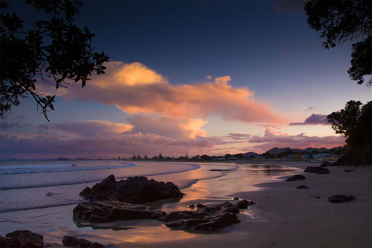Ja, Camping in Neuseeland ist so eine Sache. Grundsätzlich ist wildes Campen verboten, an manchen Stellen erlaubt, wenn man einen sogenannten self-contained Campervan hat (also mit Toilette und Dusche), für alle anderen bleibt der gemeine Campingplatz. Grund für die Einführung dieser Regelung ist der zunehmende Tourismus und die dadurch bedingte Belastung der Natur mit Müll und Üblerem. Eigentlich eine gute Sache, auch wenn wir uns des Öfteren wünschen, ein wenig ruhiger zu nächtigen und nicht mit Krethi und Plethi und deren Anhang den Platz teilen zu müssen. „Leave nothing but your footprints and take nothing but pictures.“ (Hinterlasse nichts außer deinen Fußspuren und mache nur Fotos.) Wir werden uns daran halten, es gibt schlimmeres, als nicht wild zu campen! Schnell noch das Auto zum Schlafe umgebaut, und wir erfreuen uns am Strand von Waihi Beach am Sonnenuntergang und einer Buddel voll Wein.