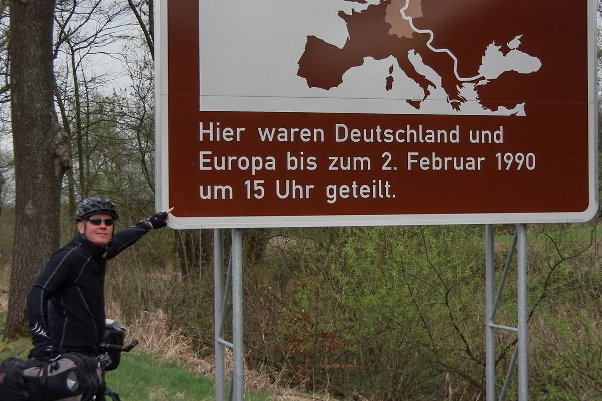 Hinweis auf den ehemaligen Grenzverlauf zwischen den beiden deutschen Staaten und bald leuchten in der untergehenden Sonne die riesigen Salzhügel der Berkaer Kaligruben. Das erste, was wir dann hören ist ‚Nuu, da hammse fleesch n weiten Wesch hinner sich‘ und wir wissen, dass wir einen weiten Weg hinter uns haben und schlagen unser Zelt an der Werra auf, an einem Campingplatz, der alle Annehmlichkeiten bietet, die nach fast 70 Kilometern nötig sind. Die Stechinsekten gibt es dann auch noch gratis dazu. Egal, wir sind in Thüringen und schon jetzt ist unsere Brust ein wenig stolzgeschwellt. (Immerhin ist noch nichts kaputt und wir leben noch.)