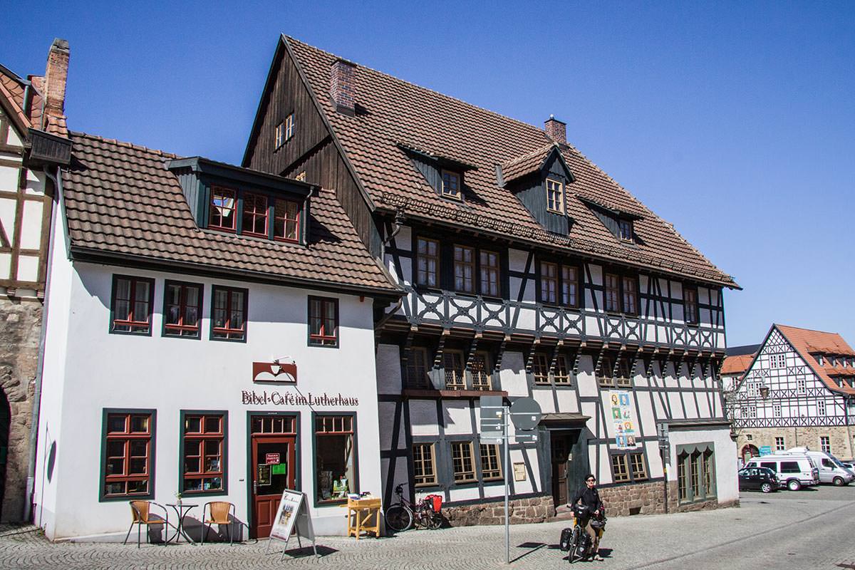 Die Lutherstadt Eisenach hat sich nach der Wende wirklich gemausert (wie alle Städte in den neuen Bundesländern) und aus der grauen Maus, wie wir sie noch aus der Kindheit kannten, ist ein buntes Fleckchen geworden, in dem es sich leben lässt. Wir bleiben aber nicht zu lange, die Wartburg, in der Martin Luther das Neue Testament vom Griechischen ins Deutsche übersetzte, bestaunen wir von weitem, das Lutherhaus und das JoSe Bach-Denkmal werden mit einem kurzen Besuch gewürdigt und alsbald sind wir wieder auf der Landstraße gen Osten.