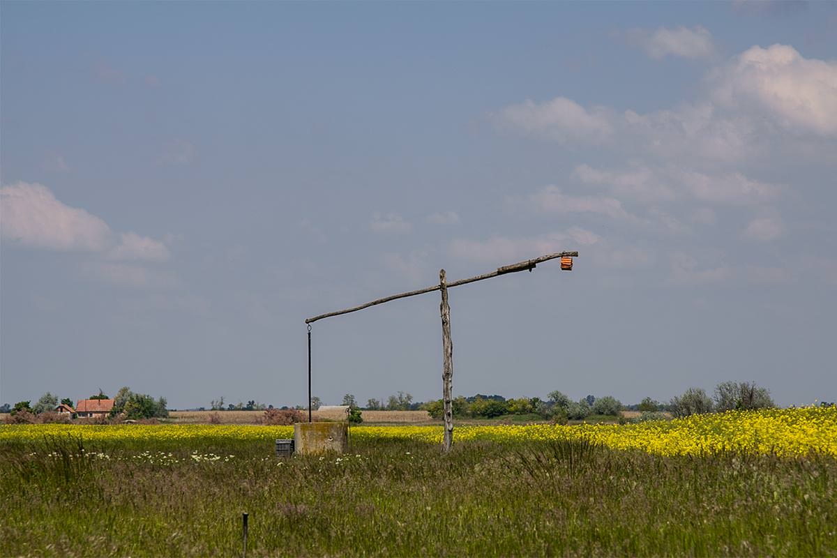 Auf Abwegen in der Pusztadas heutige Motto, eine Stadtbesichtigung fällt im Sinne des Wortes ins Wasser. Wir verlassen Kecskemét durchaus leichten Herzens und radeln für knapp 70 Kilometer durch das mehr als 20.000 ha große Naturschutzgebiet von Pusztaszer nach Ópusztaszer, einer Stadt, die erst seit etwa 40 Jahren existiert. Die ungarische Puszta ist, wie man sie sich ausmalt: Haine, Wiesen und Flüsse, immer wieder unterbrochen von endlosen Rapsfeldern, hier und da gibt es die Puszta-typischen Ziehbrunnen, Pferde, Mühlen, fast jedes Klischee wird bedient, außer dass die Bewohner der Puszta heute nicht mehr in Pumphosen und bestickten Blusen herumlaufen und bei jeder sich bietenden Gelegenheit zum Klang der Fiedel Csárdás tanzen. Die Vogelwelt ist in diesem Naturschutzgebiet einmalig, es gibt Fischreiher ohne Zahl und jedes Dorf hat mindestens eine Storchenfamilie zu Gast. Der Campingplatz in Ópusztaszer (immerhin ist einer vorhanden und geöffnet) wird uns in Erinnerung bleiben als hochgradig Fliegen-verseucht. Wir haben uns einen Platz auf weichem Laub gesucht, der sich als Schmeißfliegen-Brutstätte entpuppt, und bald ist das Zelt innen und außen mit einer lückenlosen Schicht aus diesen Fluginsekten bedeckt. Die Theorie, dass sich Fliegen nach Einbruch der Dunkelheit verziehen, ist übrigens nicht länger aufrechtzuerhalten, und als wir am nächsten Tag aufbrechen, sind die Plagegeister immer noch zu Tausenden im Zelt. Allerdings sind sie in der Nacht wie ein Wachhund, stößt man aus Versehen gegen die Zeltwand, gibt es sofort ein gewaltiges Brumm-Konzert und macht, wird postwendend munter. Oh, unverfälschte Natur!
