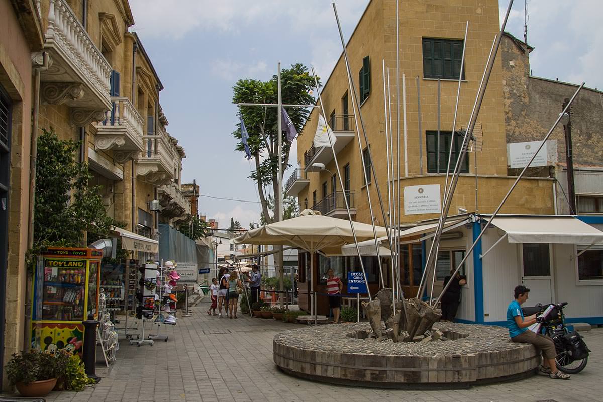 Minarett der Selimiye MoscheeIm türkischen Teil der Hauptstadt verbraten wir die letzten türkischen Lire und stehen bald an der Grenze zur Republik Zypern. Hotels sind in Nikosia für den low-budget Reisenden fast unerschwinglich. Wir verschwenden fast drei Stunden auf der Suche nach einem günstigen Schlafplatz, ein Blick ins Internet heitert uns nicht auf, „in der Hauptstadt Zyperns gibt es keine billigen Unterkünfte“ heißt es dort lapidar. Was tun? Klar, zurück in den türkischen Teil, wie gut, dass die Grenze direkt durch die Stadt verläuft, nebst Grenzübergang. Die Hotels und Pensionen im türkischen Teil der Stadt sind eine Terz billiger, dafür auch noch ramponierter. Also wieder in den griechischen Teil der Stadt, so ein Reisepass hat viele Seiten. Wir beißen in den sauren Apfel und entscheiden uns für ein Hotel nahe der ägyptischen Botschaft, um so am nächsten Tag schnell die Visumsformalitäten erledigen zu können. Mittlerweile hat sich unser weiteres Vorgehen dahin verfestigt, dass wir über Israel nach Ägypten einreisen werden. Nun könnte es aber mit einem ägyptischen (Arbeits-)Visum Probleme geben, wenn man einen israelischen Stempel im Pass hat. Politik ist oft so kindisch! Jedenfalls glauben wir allen ein Schnippchen schlagen zu können, wenn wir das ägyptische Visum vor dem israelischen im Pass haben, oder so ähnlich. Pünktlich zum Arbeitsbeginn finden wir uns bei der Botschaft Ägyptens ein und sind fünf Minuten später wieder draußen, allerdings ohne Visum, aber in schlechter Stimmung. Die Botschaftsangestellte fertigt uns ab wie Doofe, wir waren nicht einmal in der Lage, unsere Wünsche zu äußern. Wenn alle Ägypter so sind, Prost Mahlzeit! Frank fährt noch einmal in den türkischen Teil Nikosias, um ein paar Fotos zu machen, gegen Mittag schwingen wir uns auf unsere Räder und radeln Richtung Larnaka, dort gedenken wir ein Flug nach Israel zu erwischen.