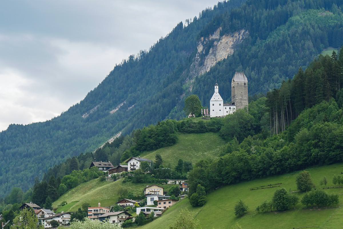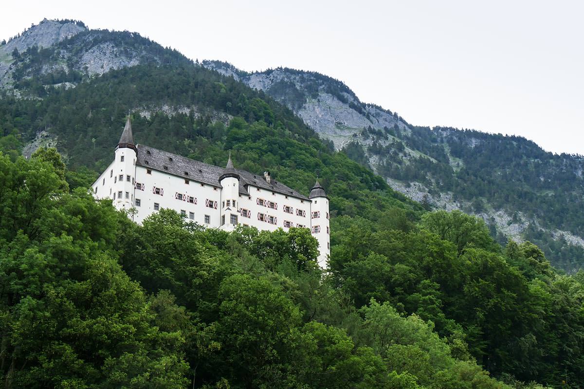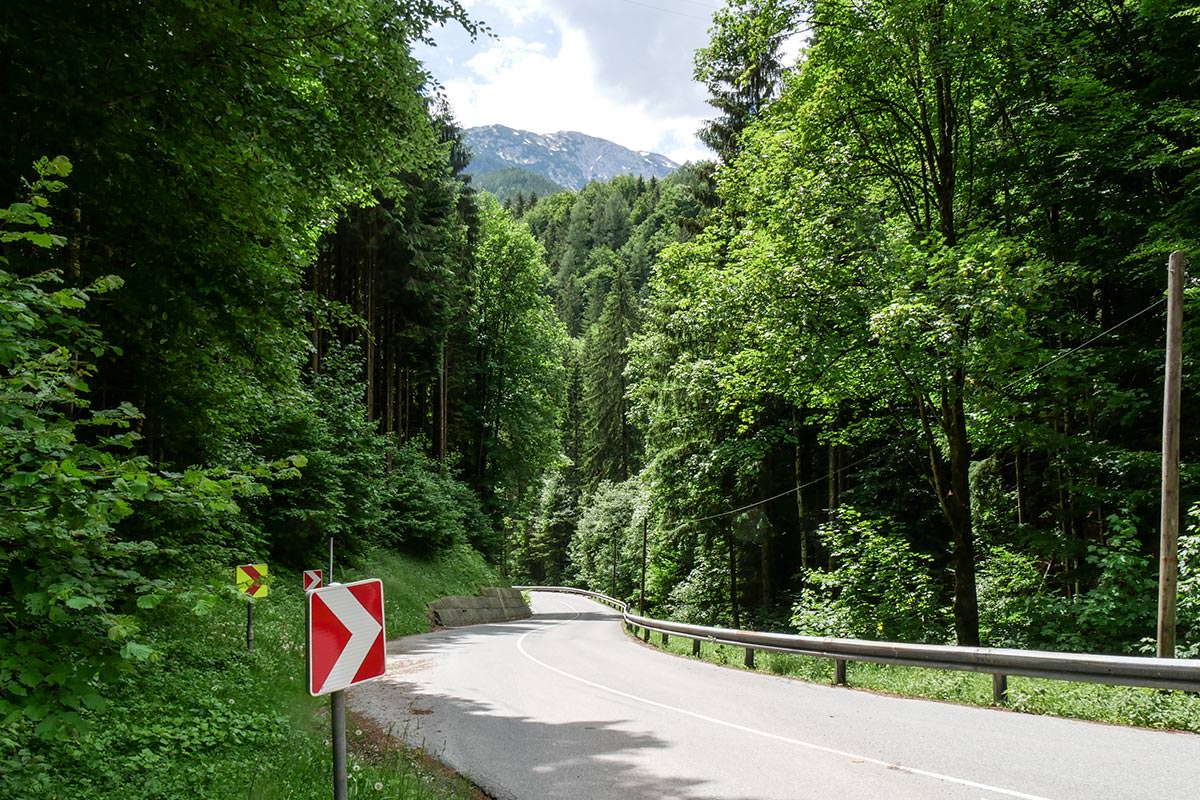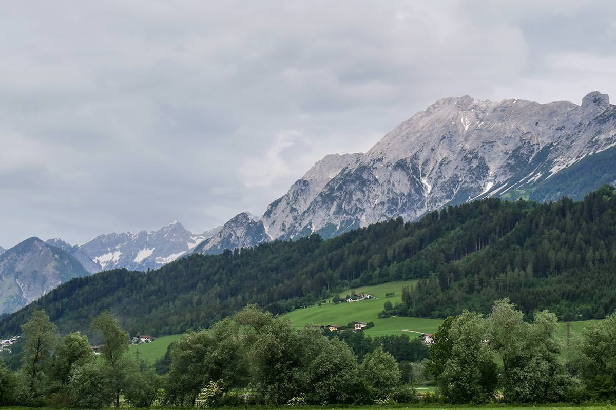 Es wird – entgegen unserem Vorhaben – die vorletzte Etappe dieser Tour werden, und eine der schwersten dazu. Am frühen Morgen mogeln wir uns durch die baustellenverseuchten Außenbezirke Innsbrucks und folgen dem Verlauf des Inn. Vorbei an der altehrwürdigen Marktstadt Hall mit dem von weitem sichtbaren Münzerturm geht es nach Wattens zu den ‚Swarovski Kristallwelten‘, einem Erlebnispark mit Museum, Ausstellung und Verkauf, von André Heller im Auftrag des Kristallglasherstellers Swarovski entworfen. Wir sehen uns am Eingang nur den ‚Riesen‘, einen grasbewachsenen Kugelkopf an, und fahren bald weiter. Etwa 15 Kilometer weiter östlich liegt die historische Stadt Schwaz mit dem Fugger-Haus, dem Schloss Freundsberg, einem Franziskanerkloster und einem Fastfood-Restaurant, das zum Mittag lädt. Ab Schwaz geht es dann wieder ans Nordufer des Inn, bei Stans lohnt eine Besichtigung des Schlosses Tratzberg, einer Renaissance-Schlossanlage aus dem 15. Jahrhundert mit schönen Fassadenmalereien. Bei Jenbach, biegen wir nach Norden ab und quälen uns zum Achensee hoch. Die Landstraße L7 hat es in sich, sie schraubt sich auf knapp 5 Kilometern über 500 Höhenmeter bis nach Maurach hinauf, Steigungen bis 16 % bringen und machen die Beine schwer und während einer Erschöpfungspause in Maurach werden wir fast von der historischen Achensee-Bimmelbahn überfahren. Maurach selbst, naja, ist irgendwie ein Touristenort. Im Winter locken die Skigebiete Rofan und Zwölferkopf, im Sommer der Achensee den Besucher. Es ist noch früh am Tag und nach einer weiteren Pause am Achensee geht es an dessen Ufern zwischen Karwendelgebirge im Westen und den Brandenberger Alpen im Osten Richtung Norden.