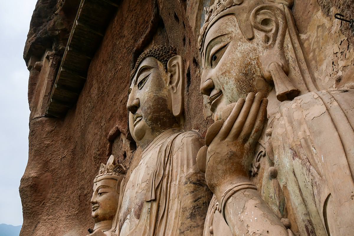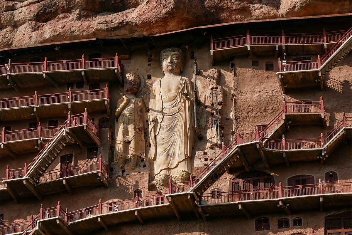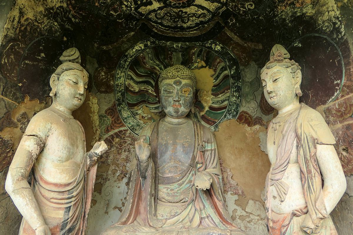 Circa 45 Kilometer südöstlich der Stadt Tianshui in der Provinz Gansu erhebt sich der Maijishan (chin. 麦基山, dt. Heuhaufen) 150 Meter hoch und weithin sichtbar aus den bewaldeten Bergen der Umgebung. An der steilen Südwestseite des Maiji-Berges begannen die Menschen bereits im 3. Jahrhundert n.Chr., Nischen und Höhlen in den Fels zu hauen und diese mit Statuen Buddhas und Malereien zu füllen. Maijishan gehört mit zu den schönsten Buddha-Grotten Chinas und ist seit 2014 UNESCO-Weltkulturerbe.